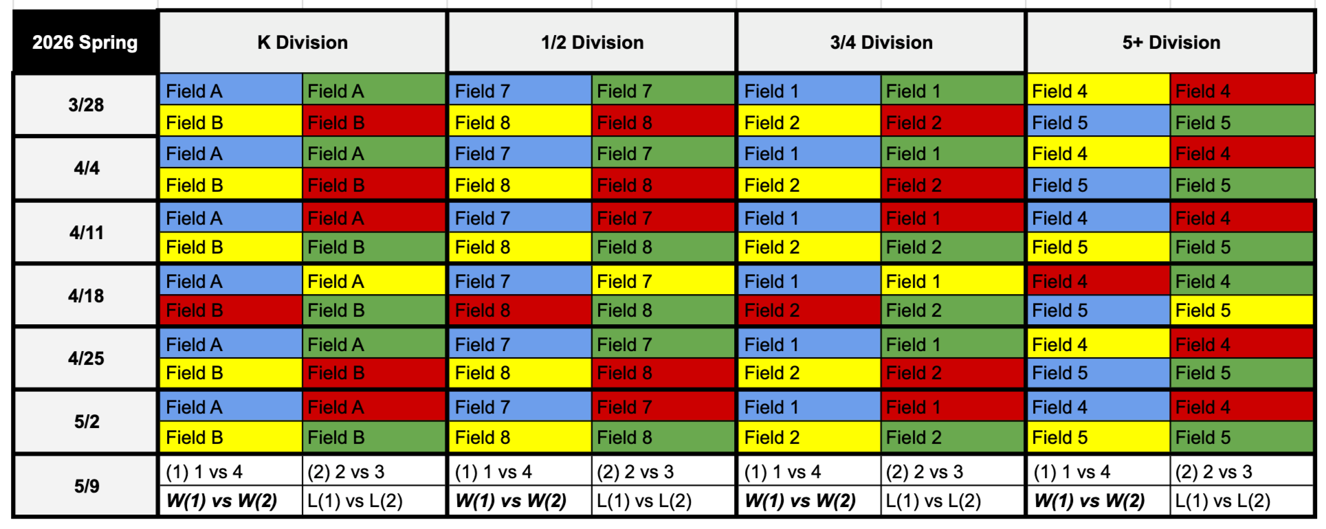 Field 9 A & B: K Division — two simultaneous games (Field A & B)